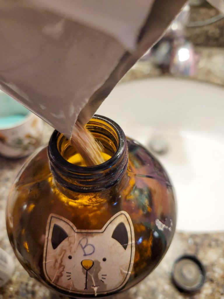 This is a two part system and different kits have different instructions. I used Cinestill this time around, which wanted me to mix part A in the beaker, put it in the jug, then add part B directly. Then swish back and forth between jug and beaker. I did it a few times until the sludge was mixed in, and *then* topped off the water.