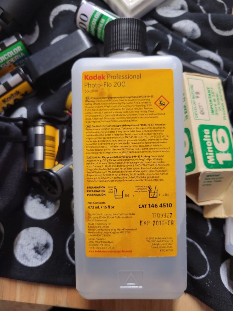 Modern film doesn’t need stabiliser I guess. I bought this new kit and was confused because it was missing. Turns out we don’t need it anymore. I, however, was developing some expired and very old rolls this go, so I purchased some stabiliser to soak it in after the wash. Might have been fine without it, but I felt better having it.