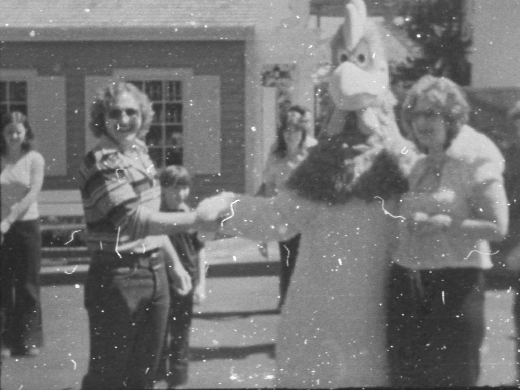 Isn’t it fantastic that light imprinted onto some photosensitive chemicals in the ’70s could just wait and maintain its shape for all this time? These moments in time simply waited, patiently, in a box that I existed nearby for large portions of my life. I may have moved this box, touched this very undeveloped roll of film at some point in my childhood. My father may have, in the decades since exposing it, picked it up a time or two before and said “oh wow, I need to get that to the photo lab” and forgotten again, until photo labs stopped processing 16mm film. I’m glad I got to help free it from wonder, and see a tiny image of my father, before I knew him, shaking hands with a rooster.