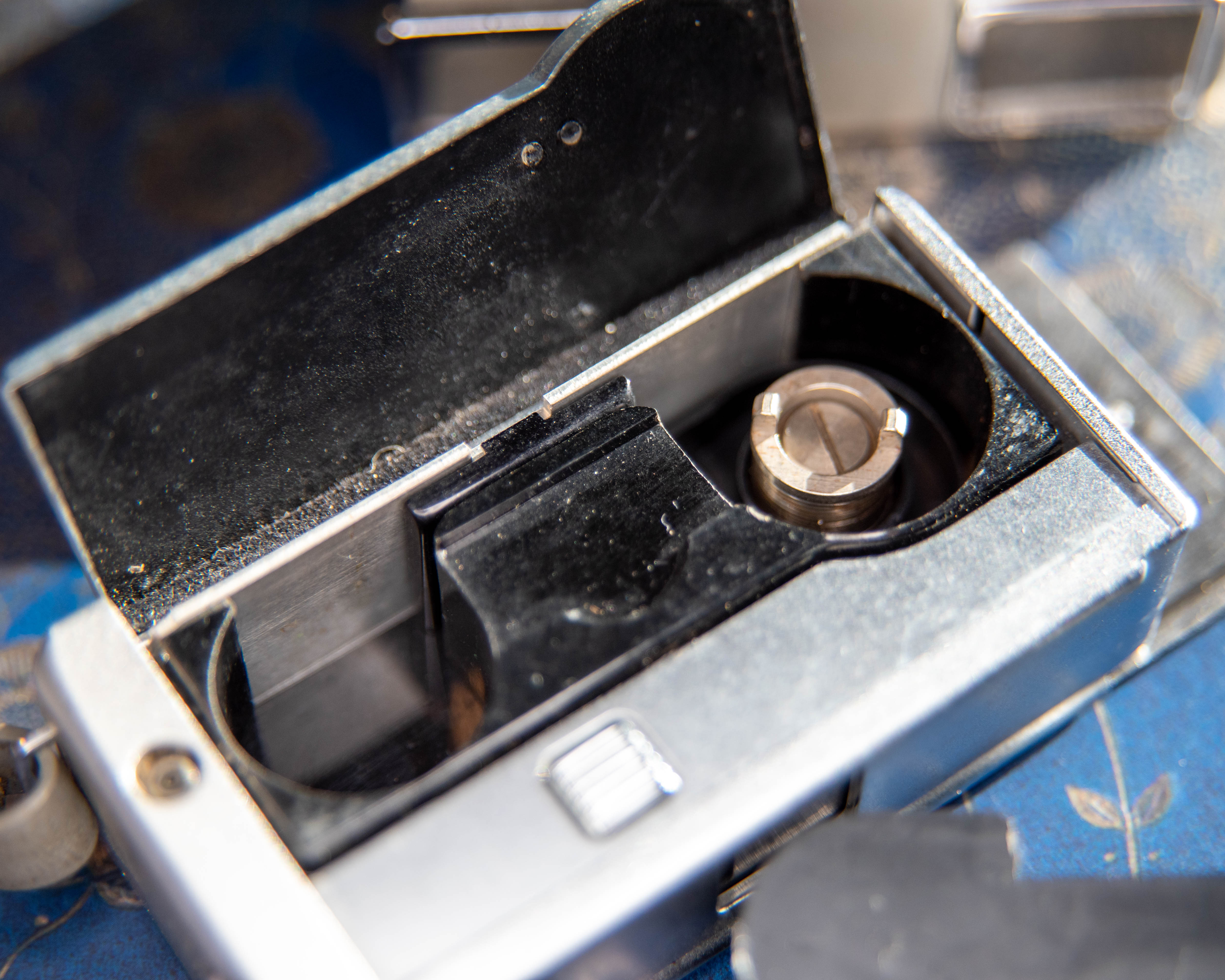 My father-in law passed away 20+ years ago and my wife dug out the Minolta-6 that he left her. I was cleaning out the closet and I found it, but had no idea on how to open it let alone take any pictures……..assuming I could find the appropriate film…..With the pictures you have on the website, I was able to open it for possibly the first time ever. (Pops liked buying toys and not quite understanding how to use them. I’m almost certain that there has been limited to no actual use on this. I’m the camera guy in the family, but I have no knowledge regarding the use nor the knowledge on developing any film in the event that I try to figure it out. Do you have any idea as to the value if any this camera might have. Today was the first time I was able to open and examine the inner workings after scratching my head about for several hours. If you have any interest in this little jewel, please feel free to contact me. I would be happy to send digital pics of the camera if so. By the way, the outer case has a gold colored outer case. Thanks for posting as I had no idea on how to work with this tiny jewel. Thanks, Larry