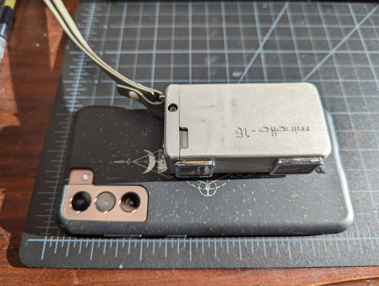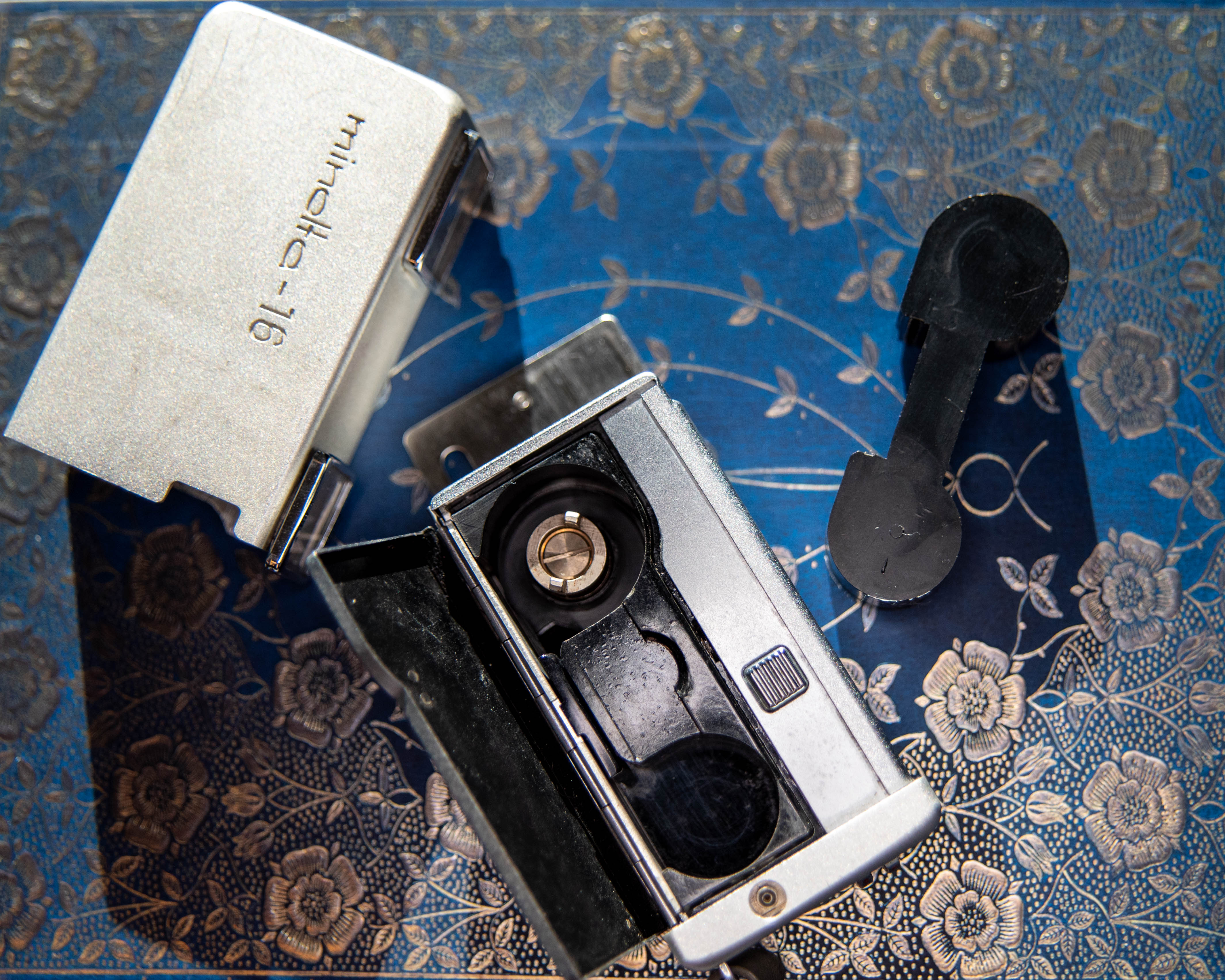 Back in the early 2000s, when my father was gifting me my very first 35mm SLR, he handed me two boxes of all his “accessories” to go along with the Vivitar. Mostly, it was full of lenses and filters, but there was also this little piece of art: the Minolta 16.