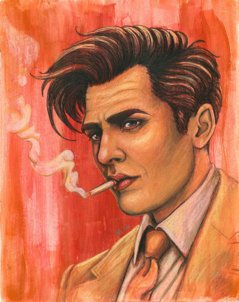Caradoc had all the features of a man from my world: heavy eyebrows which could shadow his eyes to full darkness; a stoic mouth that perpetually carried a cigarette; and a ridiculous height like he was spending his time in shadow whispering to the gods. The first time I saw him, I wasn’t surprised, but I was disappointed. Rhys’ mum had been so much brighter and happier than the people I was used to in The Glass Hollow, but his uncle seemed to be simply another man. My immediate hope was that he’d ignore me, because in my experience, the alternative was to hurt me.