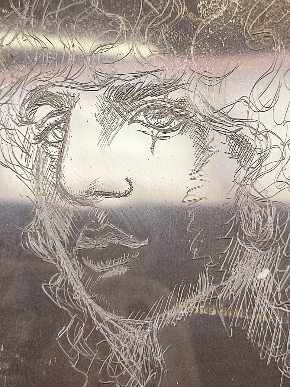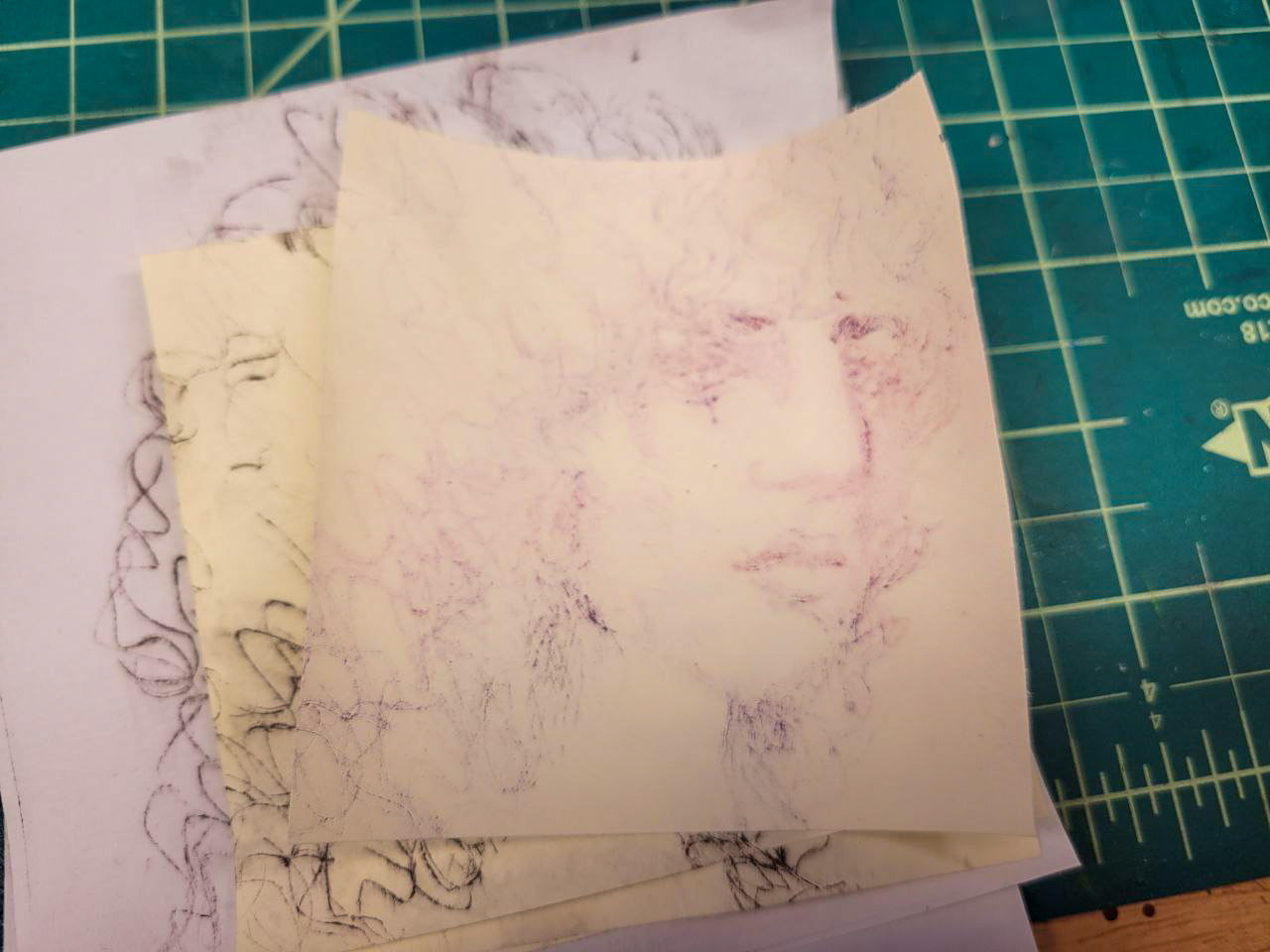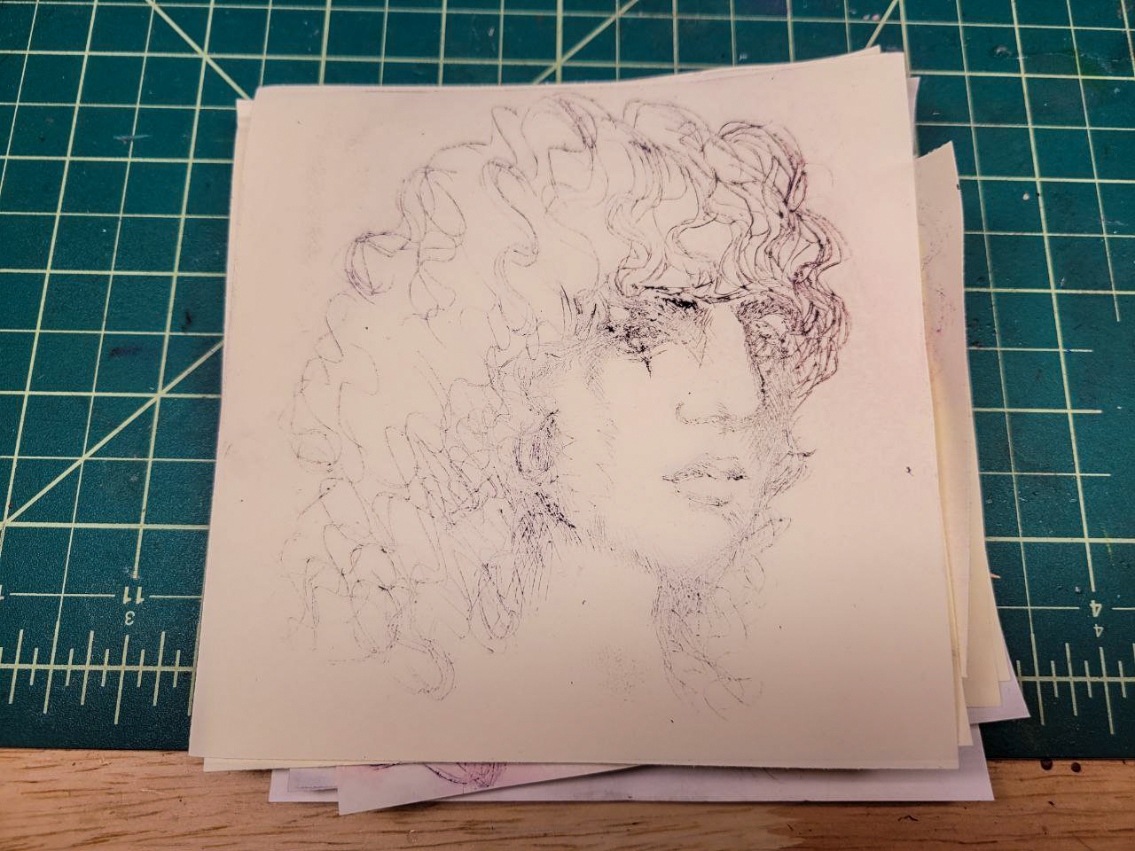 This is actually my second attempt, if I’m going to be perfectly honest, because the first time I did this, I thought I was inventing a new technique where I push hard on the plastic and the other side of it becomes the printed side. It kind of worked, but then I remembered etching has already been invented, but it must be done in reverse. So I had to start over and draw Mort backwards.