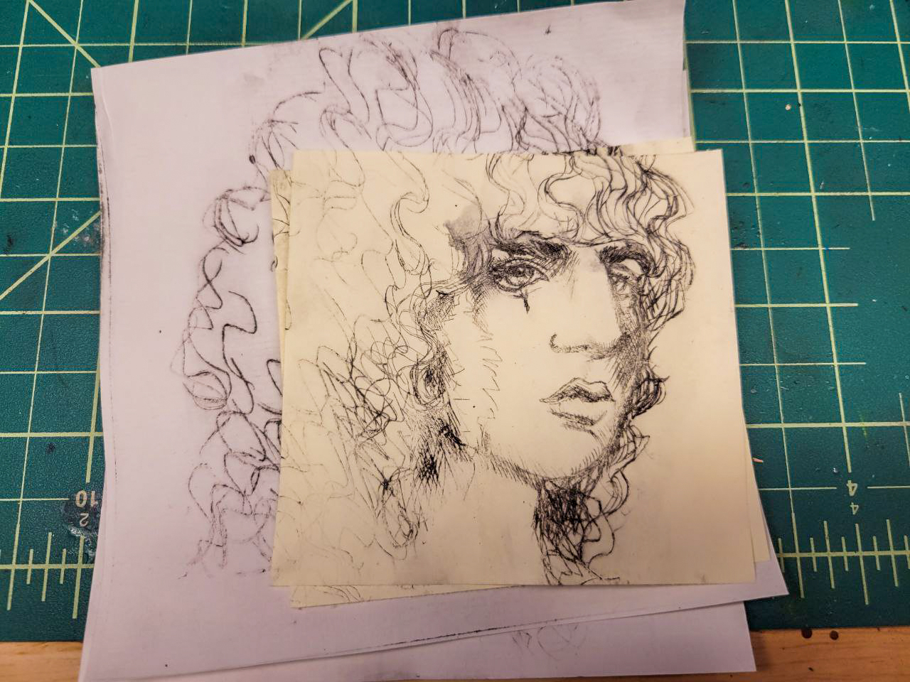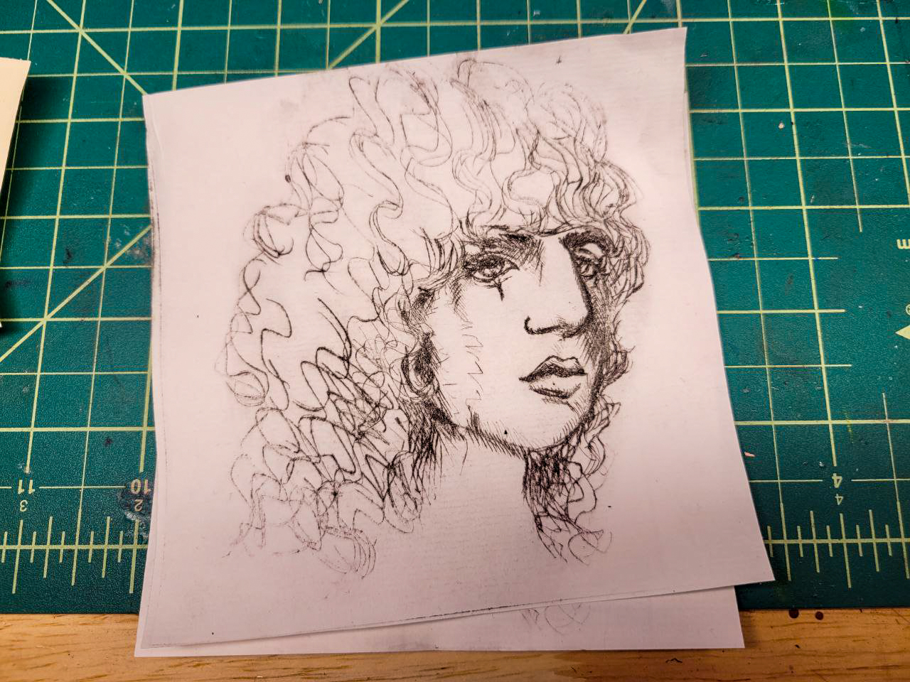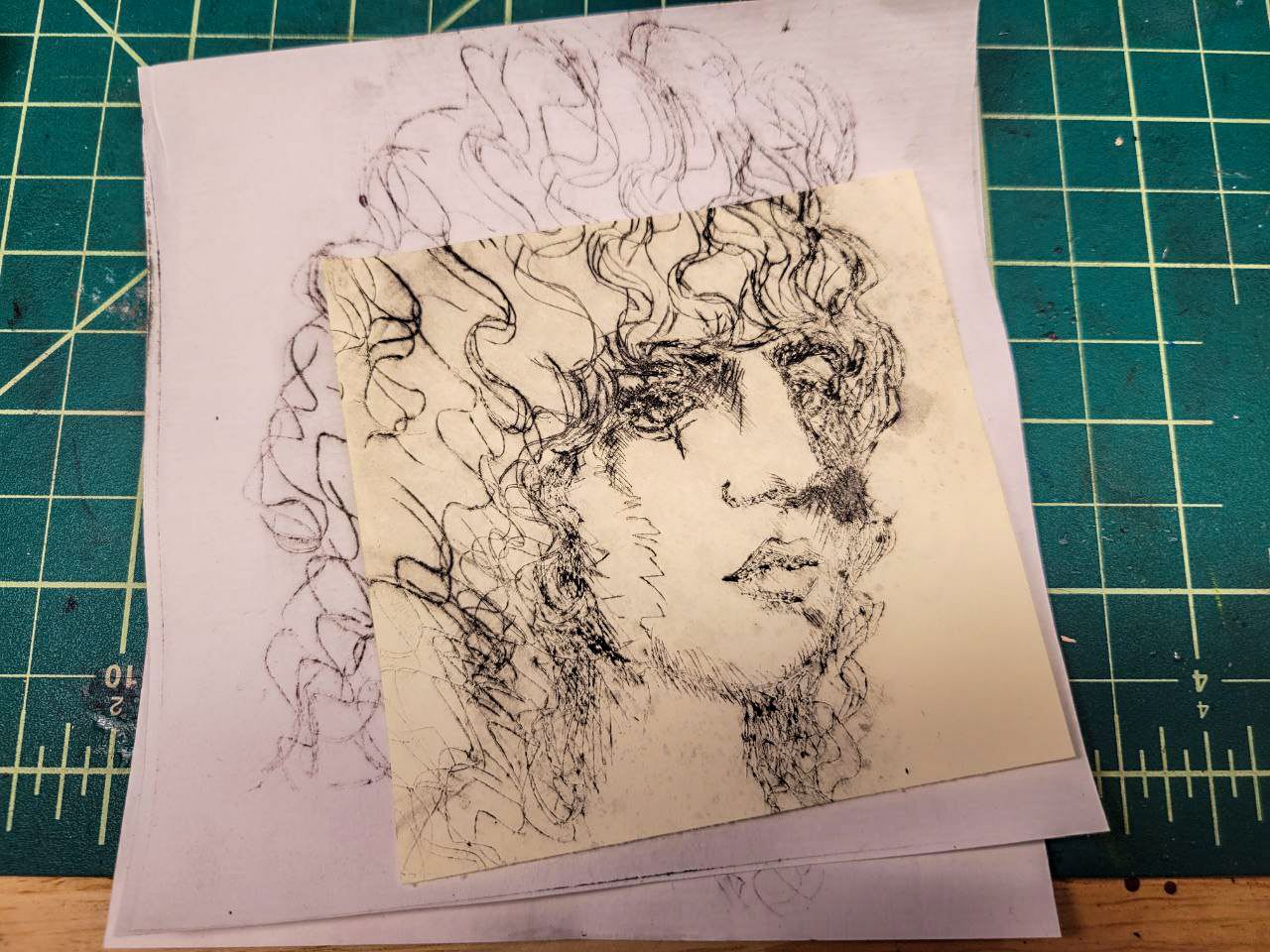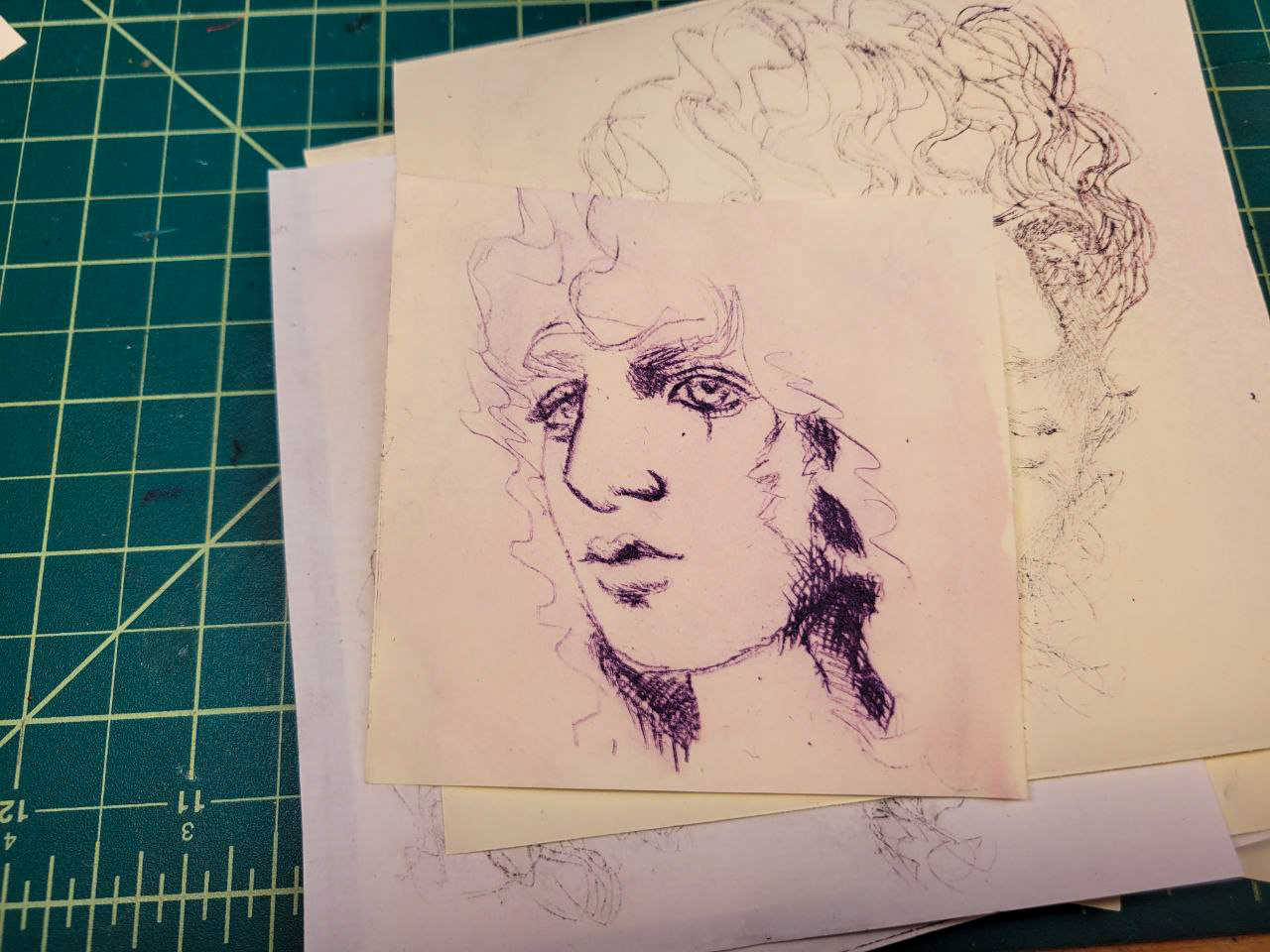 So, in the end, I created a small pile of Morts. The first tests I did were with the “wrong” plate which I’d etched not in reverse (the scar is supposed to be on the right side of his face), but I think they came out better, funnily enough.