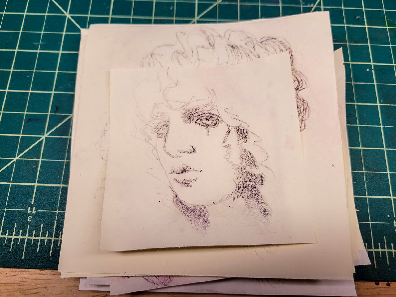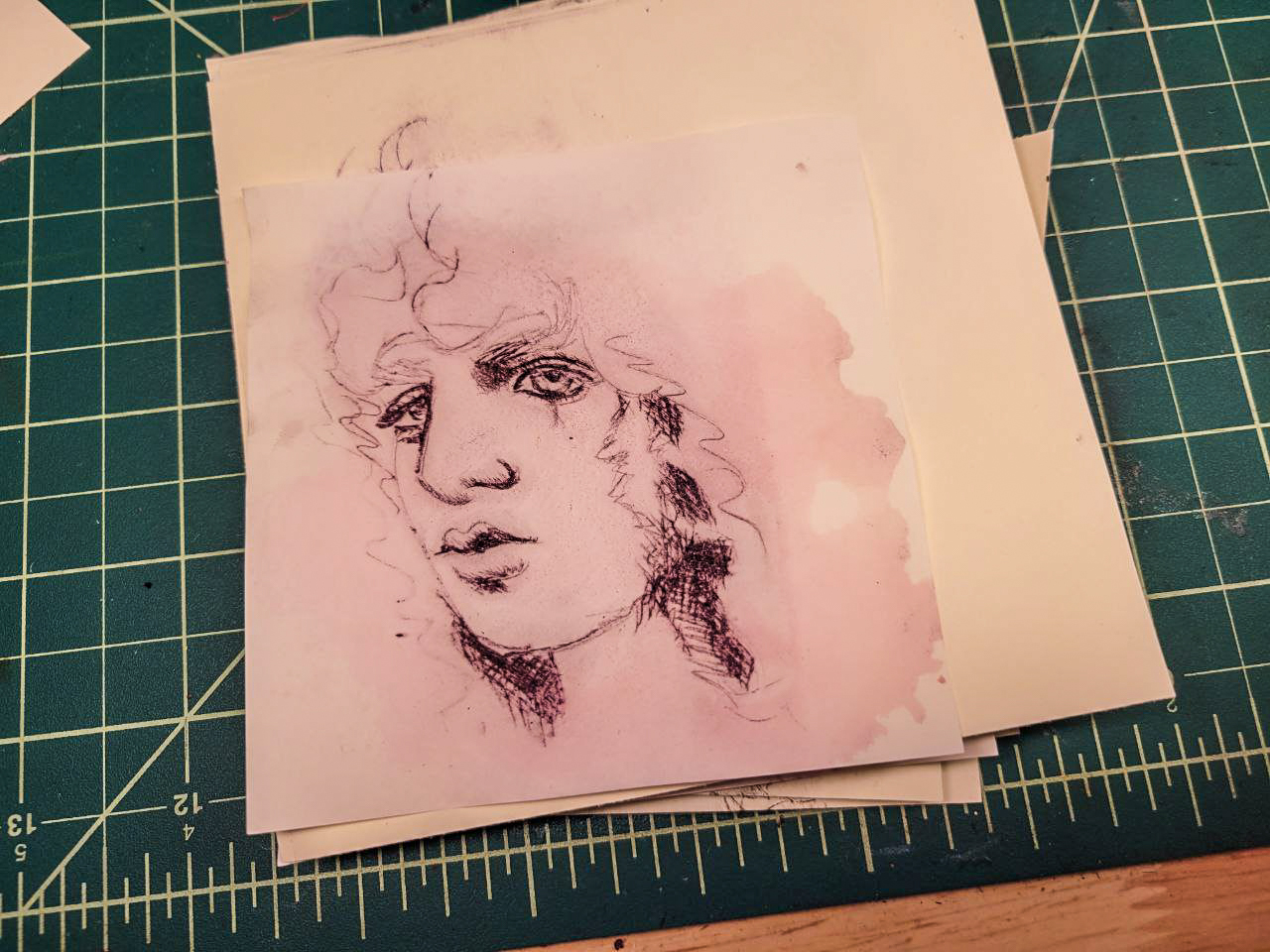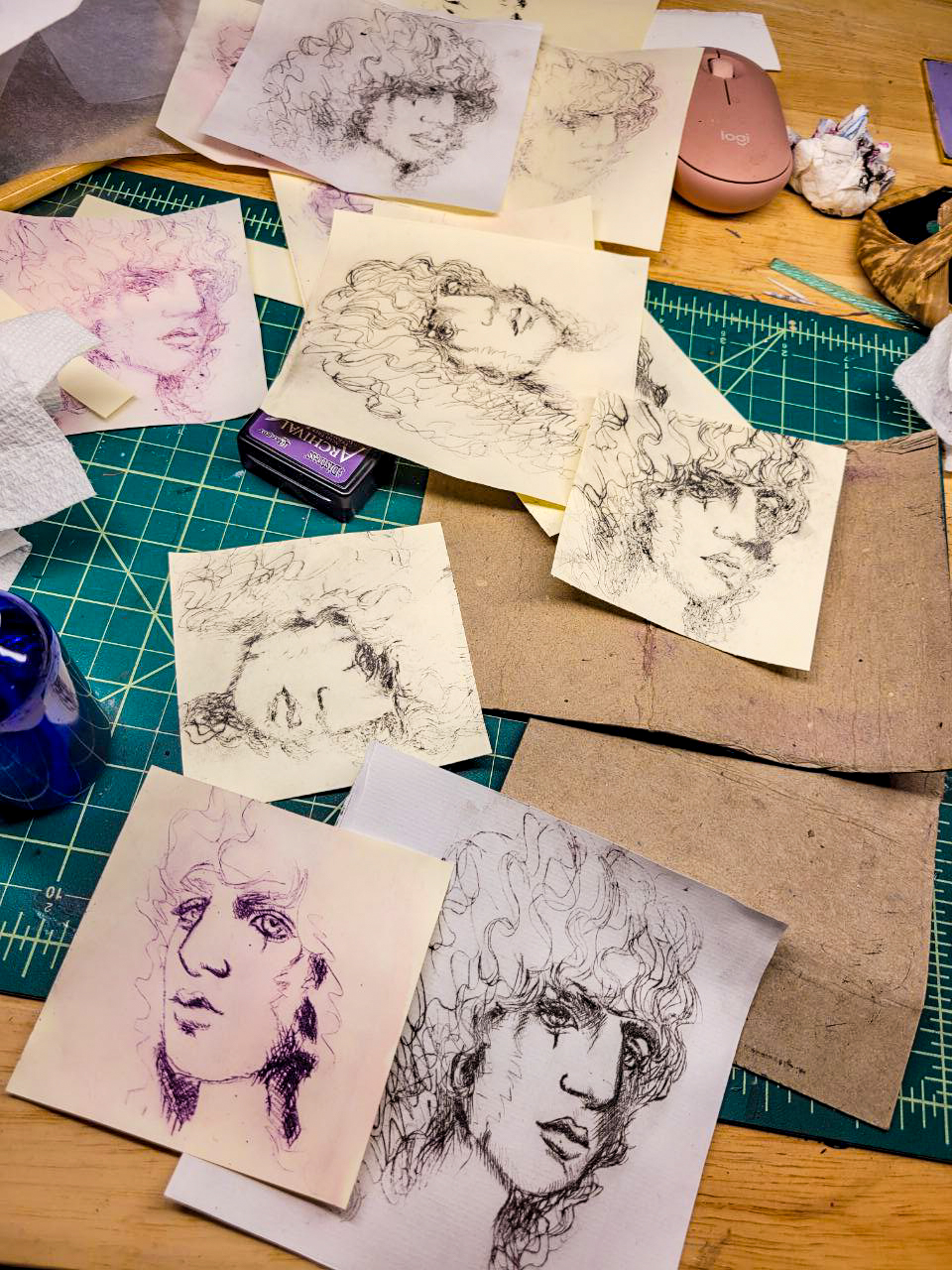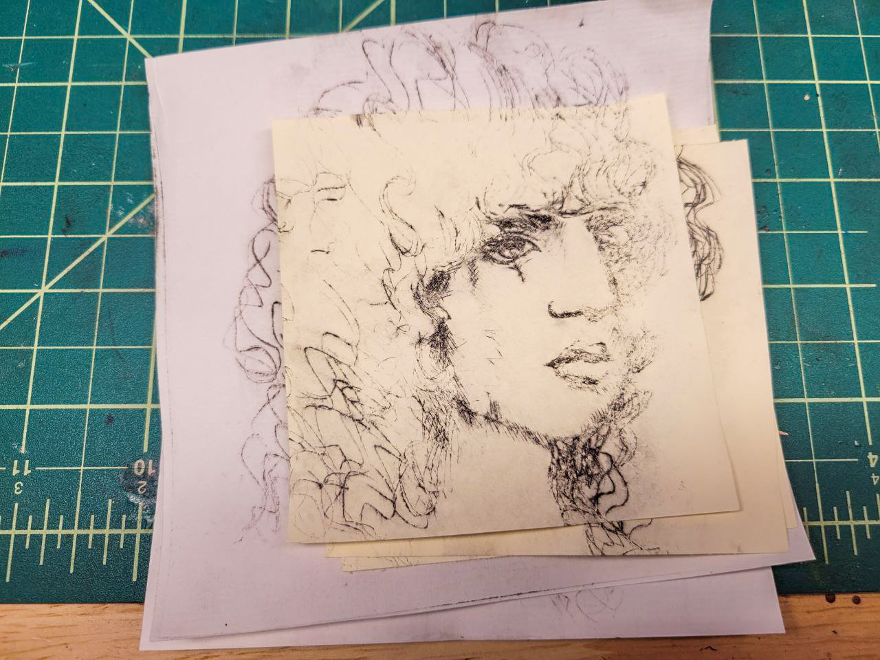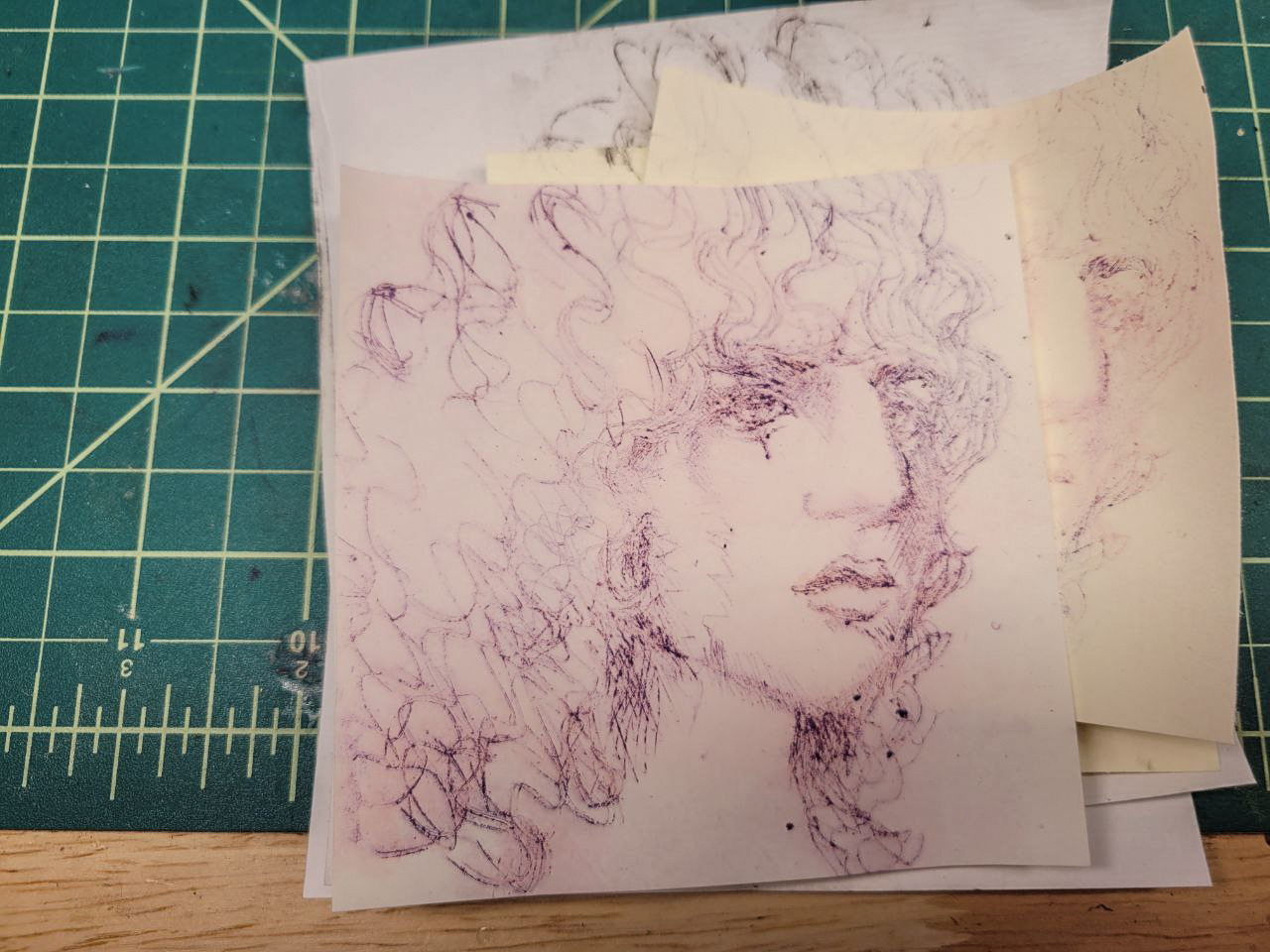 So, in the end, I created a small pile of Morts. The first tests I did were with the “wrong” plate which I’d etched not in reverse (the scar is supposed to be on the right side of his face), but I think they came out better, funnily enough.