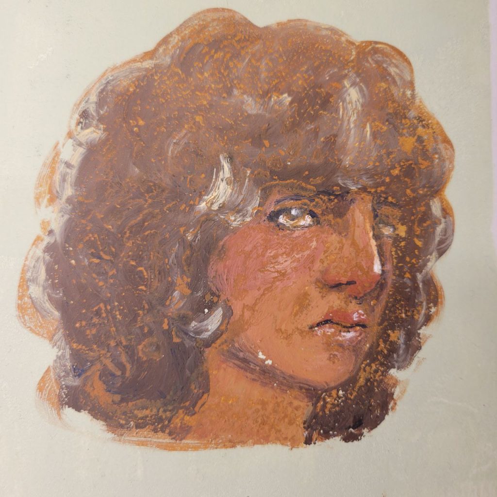 More shadows and shades of red, added in multiple layers. Probably five or so thin layers of deep shades. More would likely have been even better. I also added a thicker layer of brown throughout the hair. This is the underlayer of the hair, signifying that I’m finished with it. It should have been darker, but that’s alright.