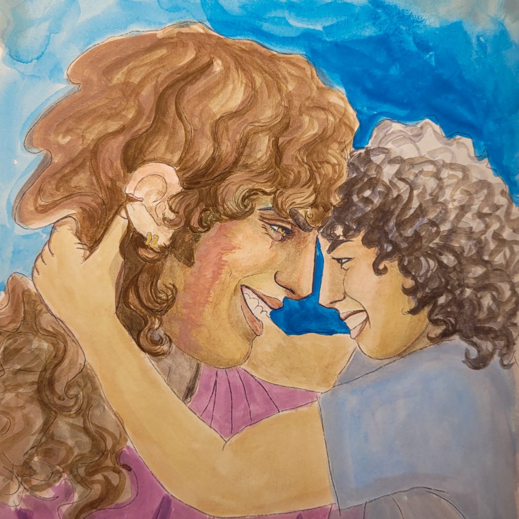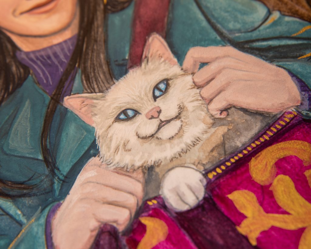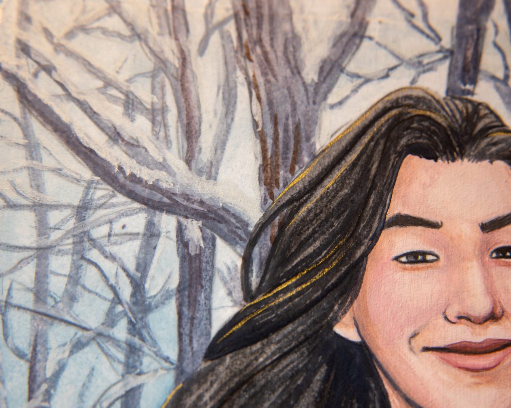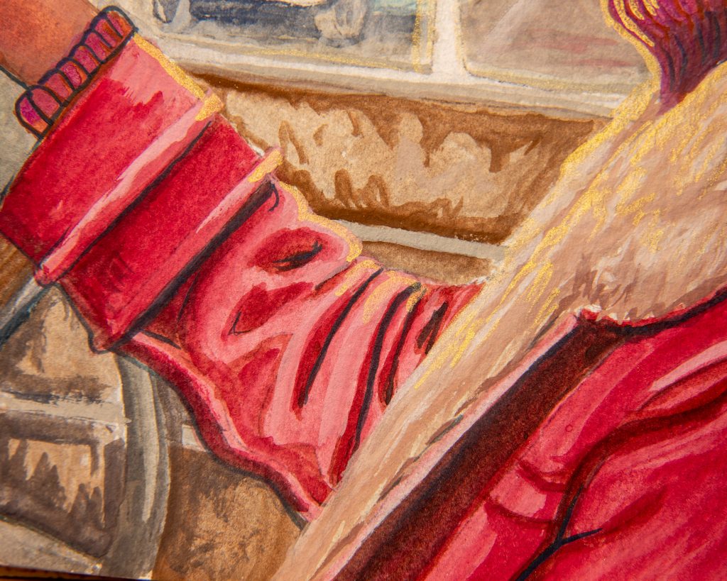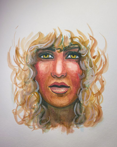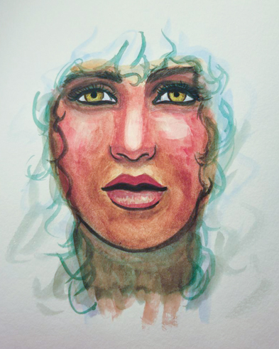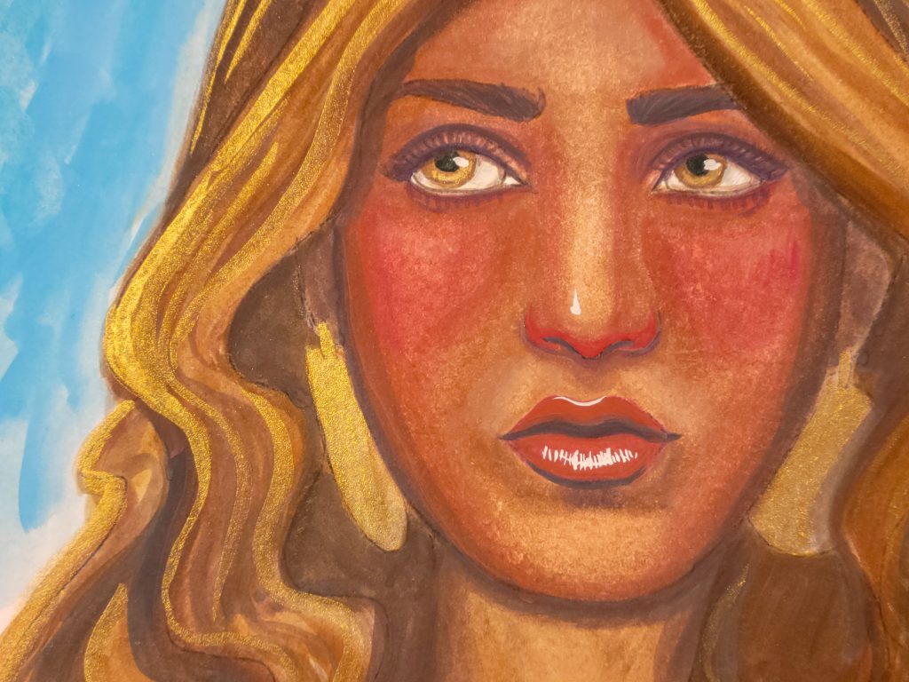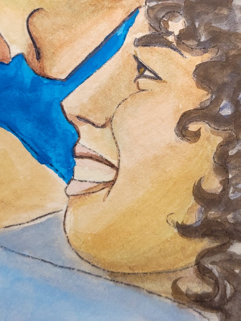 Even though it’s still not quite the golden colour I usually end up with, that’s alright because the grey environment actually works this time. It’s more than just the skintone that makes this one superior, though. I stretched my paper, worked wet-in-wet, and was just much more patient with it.