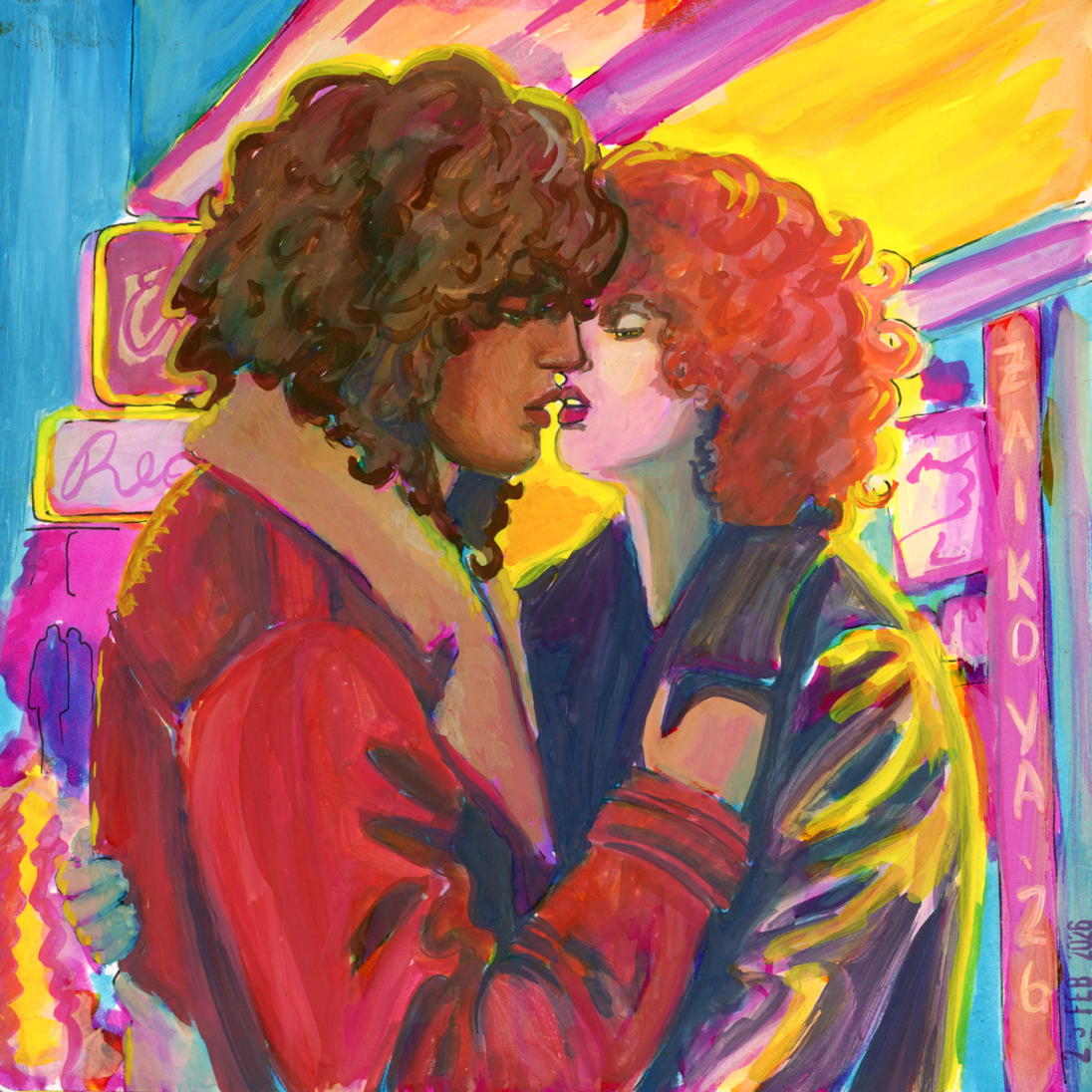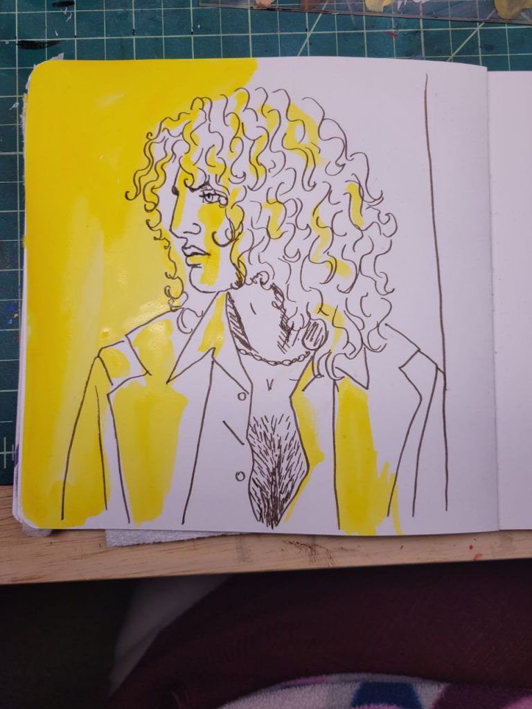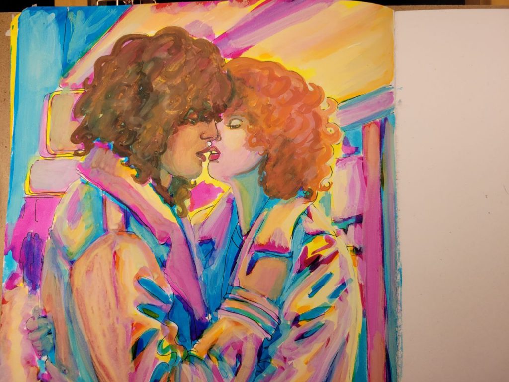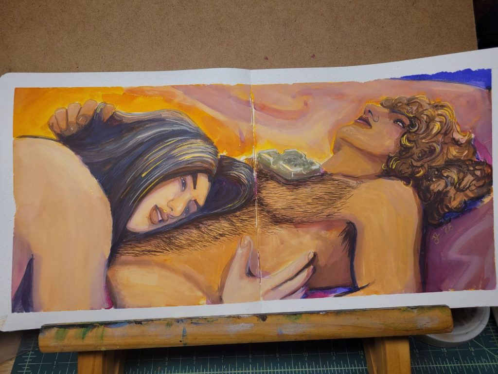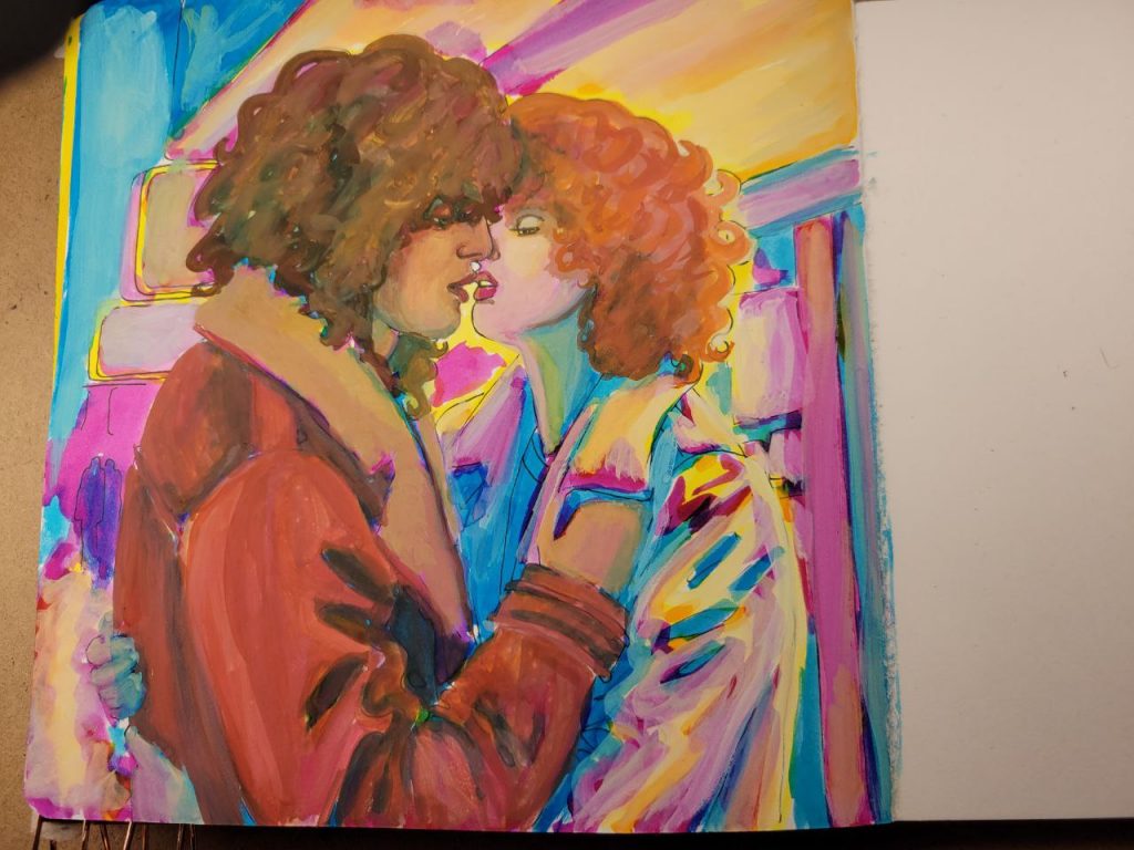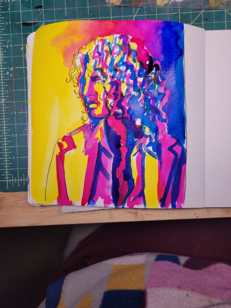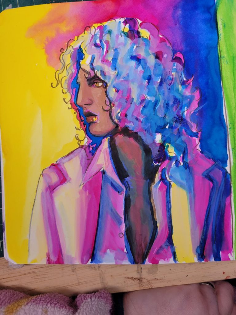 This was with more of the radiant concentrated watercolours, with a red added in, as well as an orange. I could make this one better with a bit more care and love, but I was struggling to get opacity in certain parts and decided to move on. I’ve done about a hundred variations of this drawing/scene, and this is the closest I’ve come to the proper vibes. I hope I can figure this technique out and make this illustration lovely one day.