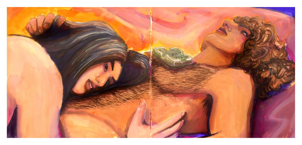 Here is when I discovered the use of Dr Ph Martin’s Radiant Concentrated Watercolours beneath gouache. I was looking for more information about underpaintings with fountain pen ink, and found an artist (Laura Loxley on youtube) who used these beneath gouache. I’d only used them for backgrounds before, but this is my new favourite use for them. The obsession held on strong.