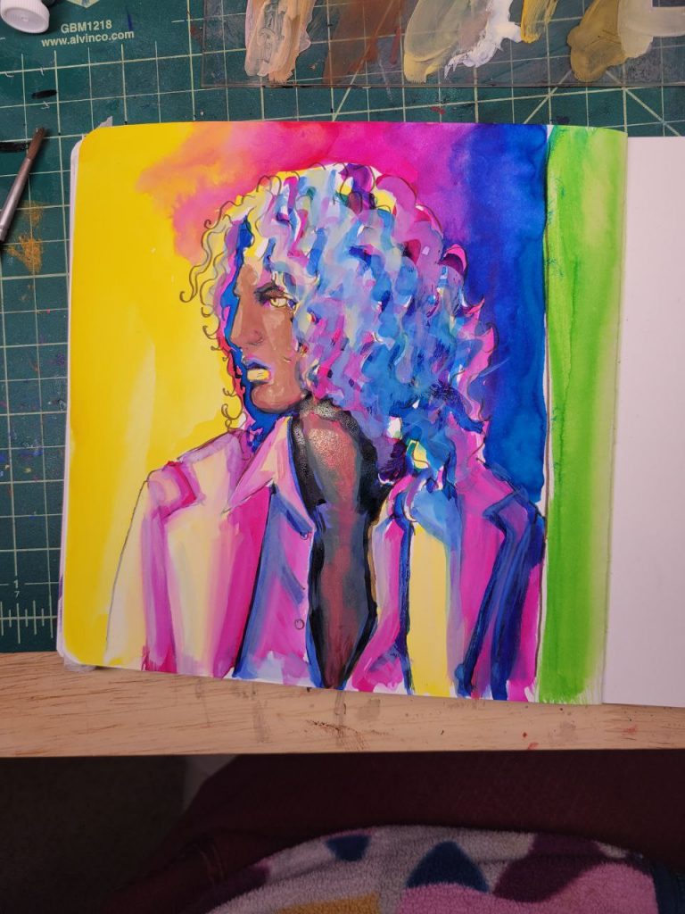 I put too much white in this one, especially in the shadows. It would be best to add white gouache to the highlights, fade them into the midtones, and then leave the shadows for deeper colours. Seems kind of obvious as I’m saying it, but that layer of white gouache is really my favourite part. It gives every subsequent layer something to blend into.